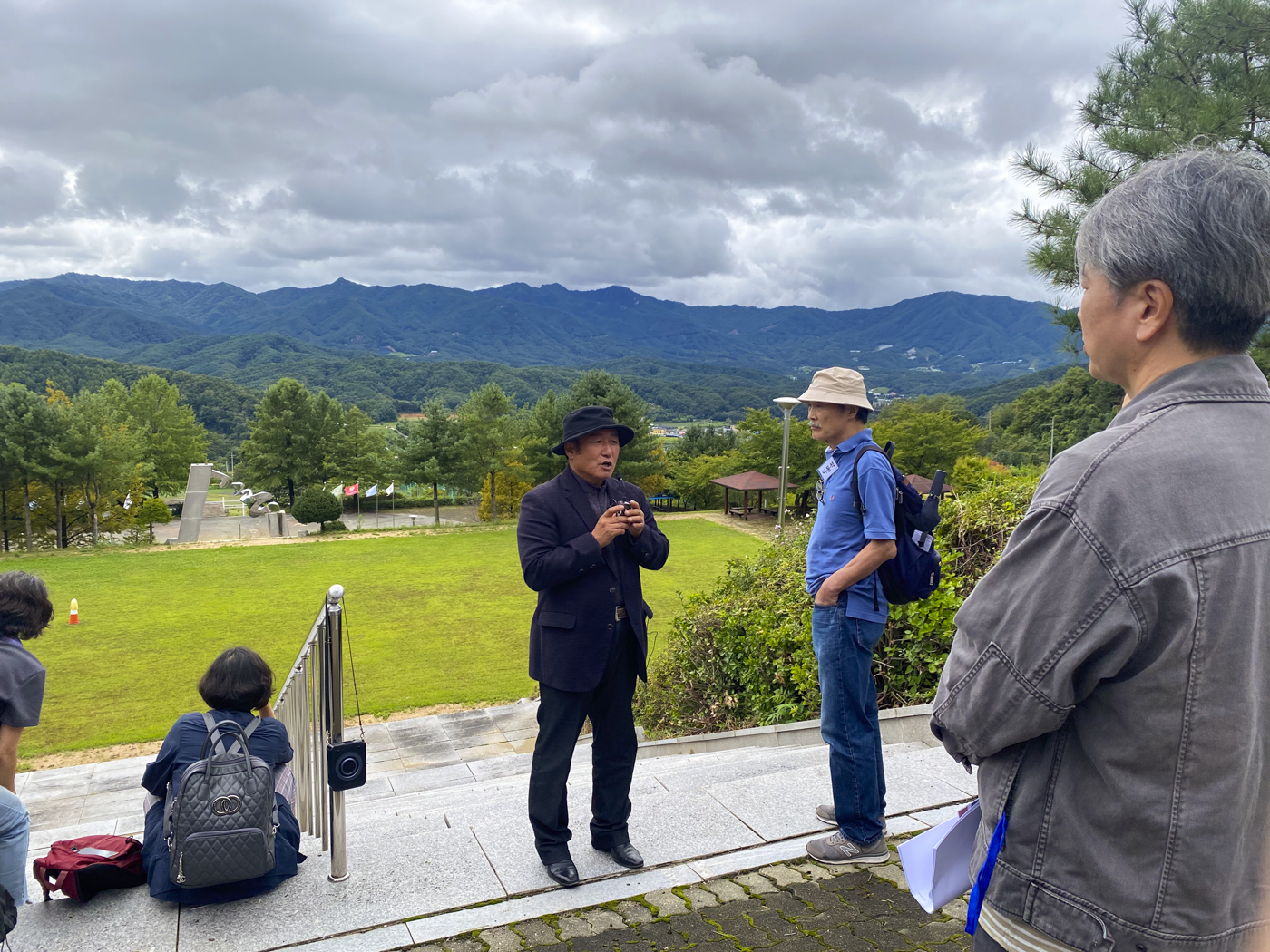 <월남파병용사 만남의 장>에 도착한 후, 윤충로 선생님의 이야기를 들으며 참가자들은 오음리라는 공간에 얽혀 있는 한국 사회의 다양한 욕망의 그물을 살펴볼 수 있었습니다. 베트남전 참전군인들에게는 성지와도 같은 오음리 훈련장에 <월남파병용사 만남의 장>이 건립된 것은 단순한 베트남전 기념 때문만은 아니었습니다. 1990년대부터 시작된 강원도 일대의 안보 관광 바람 속에서 1997년 강원도 의회의 제안으로 <월남파병용사 만남의 장> 건립이 논의되기 시작한 배경이 있었습니다.