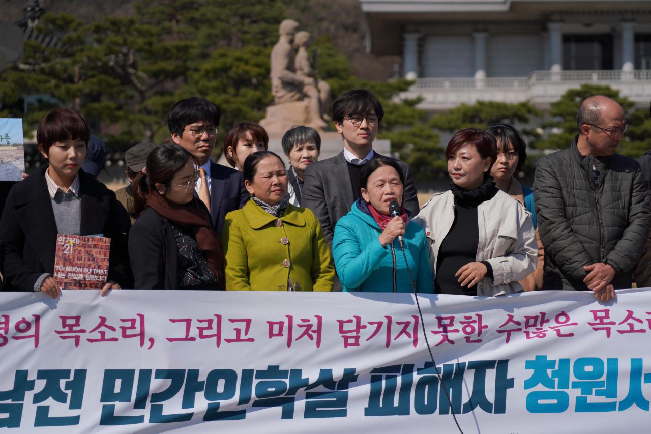 4번 사진: 베트남 피해자 103인 청원서 제출 기자회견에서 발언하고 있는 응우옌티탄