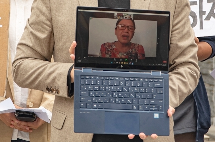 화상으로 심정을 전하고 있는 신청인, 하미학살 피해자 응우옌티탄