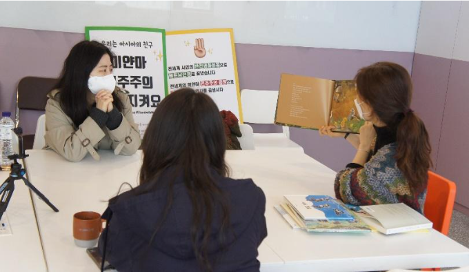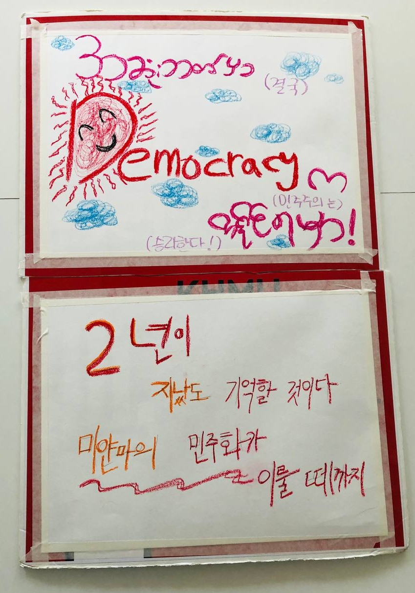 정말 다양한 나라에서 다양한 관점에서 표현한 그림책들이 어른들에게도 큰 울림을 줄 수 있다는 걸 느꼈다. 한베평화재단이 미얀마 대사관 앞에서 1인 시위를 하는 것을 알았지만 기회가 되지 않아서 아쉬웠는데 이번에 같이 참여하게 되어서 다행이었다.
