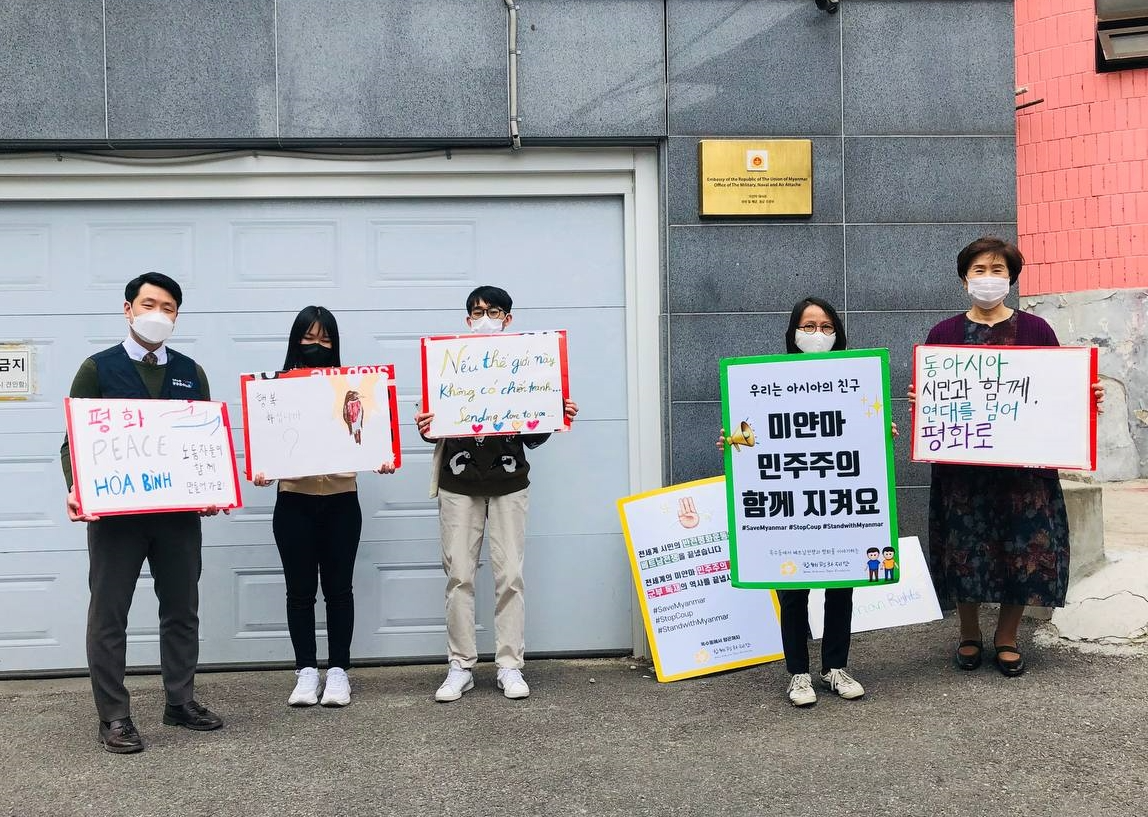 한국에서 피어나는 봄꽃이 마냥 아름다울 수만은 없는 4월입니다. 미얀마 민주주의와 평화를 외치기 위해, 전쟁과 평화를 고민하며 이야기를 하고픈 세 나라의 청년들이 모였습니다. 미얀마, 베트남, 한국 청년 16명이 모인 ‘동아시아청년평화프로젝트’가 4월부터 시작되었습니다.