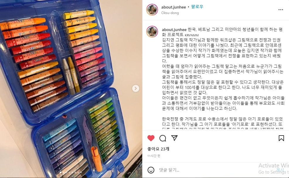 참가자 서준희 님이 참가 후기를 올린 인스타 캡쳐