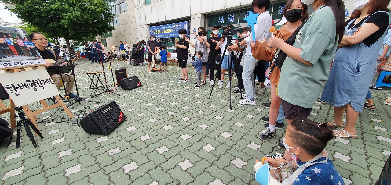 장터에서 열린 공연에도 참여했습니다.
