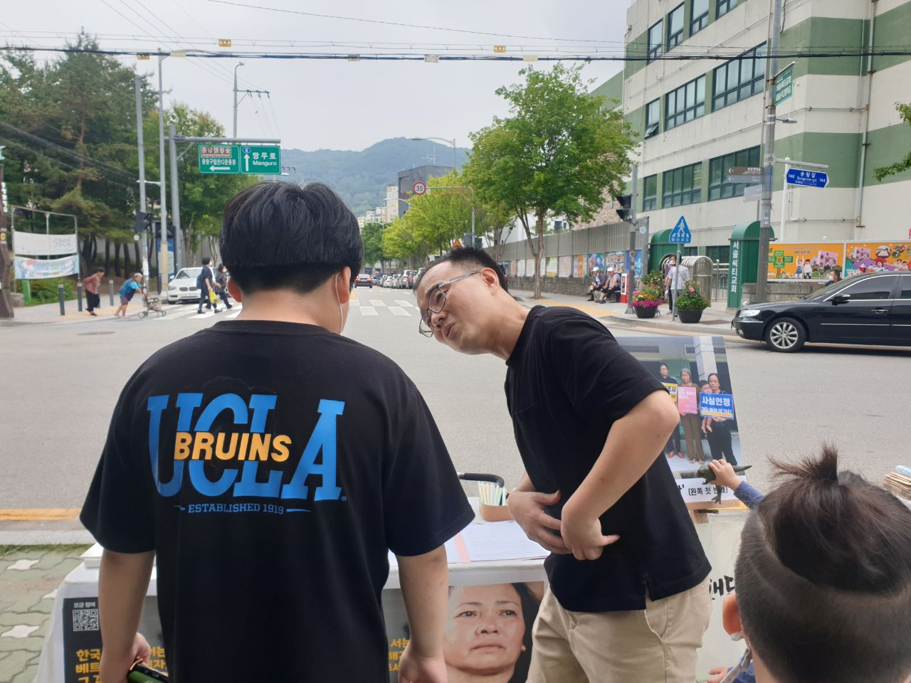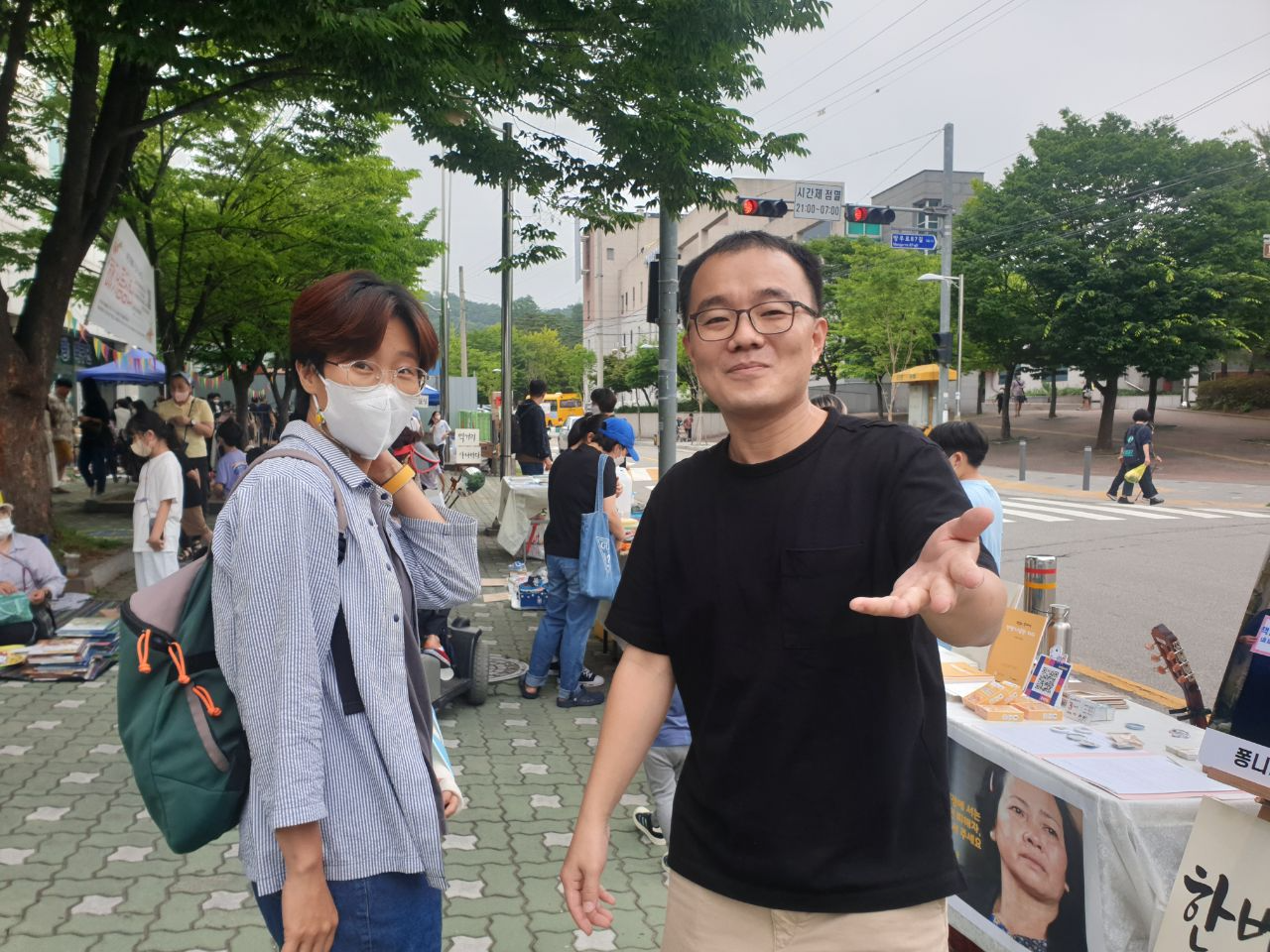 재단의 라니(이정란 활동가), 짜노(권현우 활동가)가 4시간 동안 양원역 2번 출구 앞에서 중랑구 시민 분들을 만났습니다.