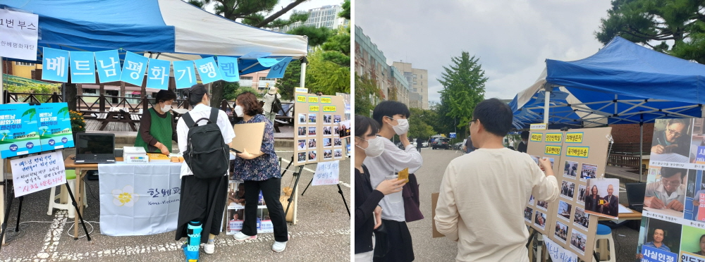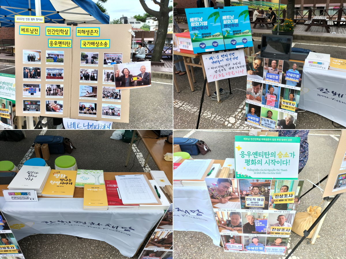 이날 부스 행사를 위해 국가배상소송 원고 응우옌티탄의 8월 방한 활동을 사진에 담아 전시했고