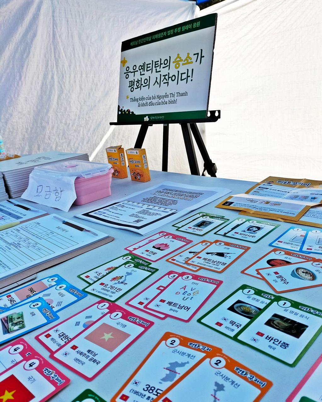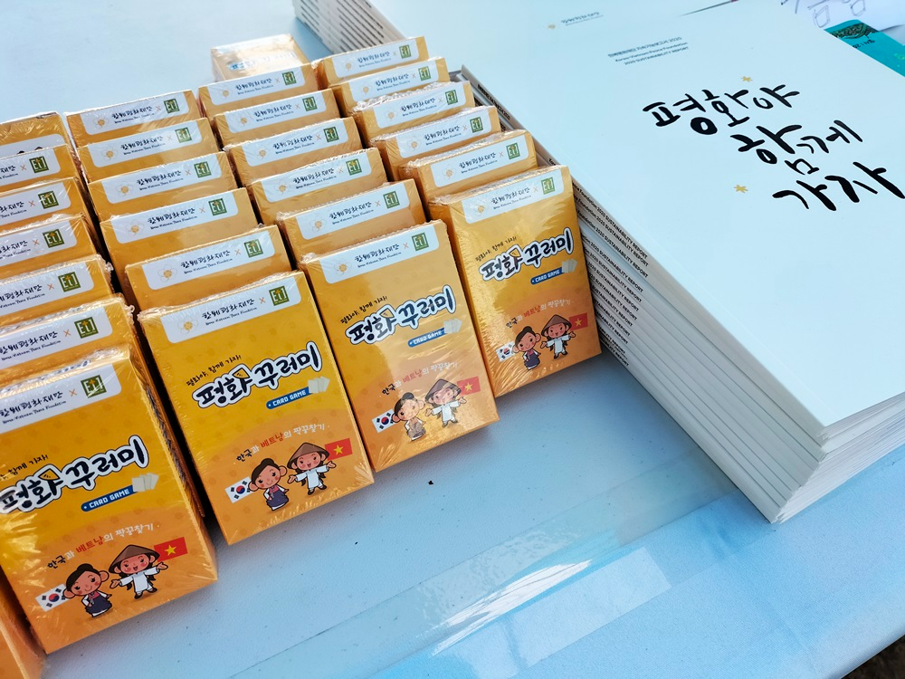 평화꾸러미 교재 '한베 짝꿍 카드'를 전시해 인증샷에 참여하고 부스에 관심을 보인 분들에게 선물로 드렸습니다.