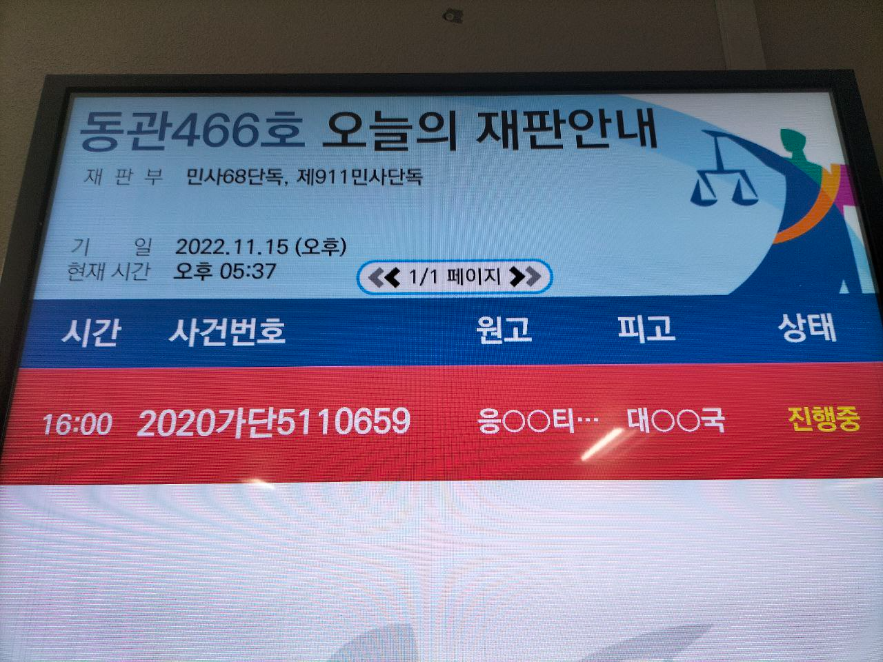 11월 15일(화) 16시, 대법정에서 열린 응우옌티탄 국가배상소송 9차 변론기일