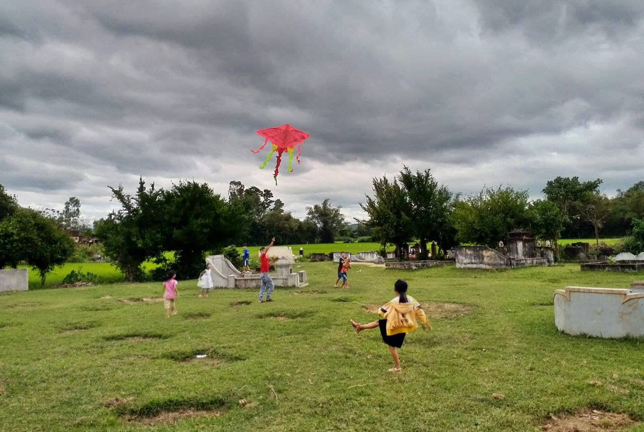 아이들이 까르르 웃으며 연을 날립니다