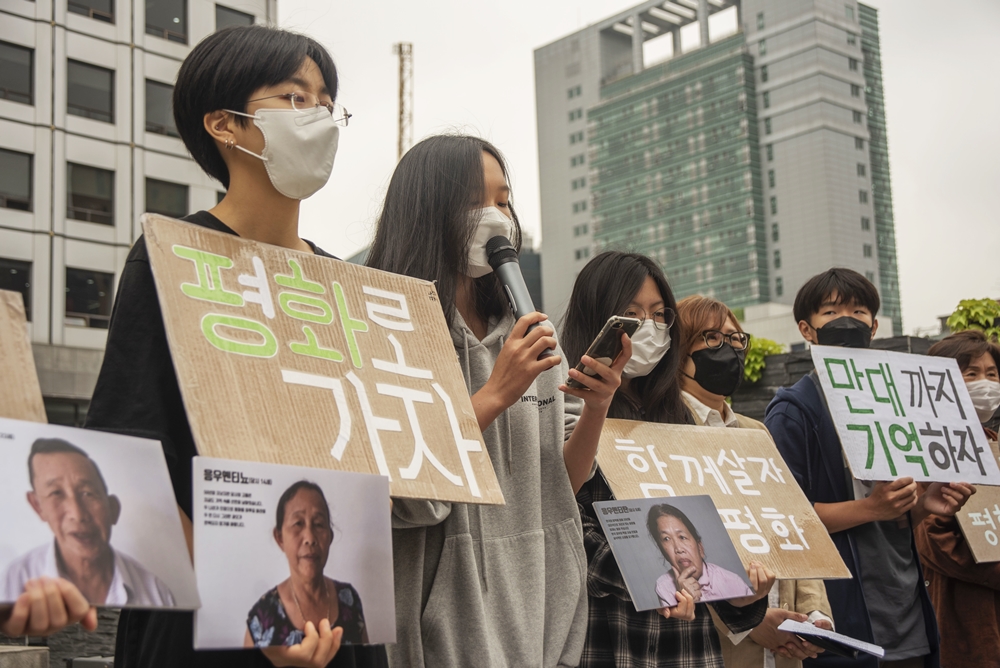 “피해자들이 잃어버린 정의를 되찾을 수 있도록!” 기자회견이 4월 25일 월요일, 진실화해위원회 앞에서 열렸습니다. 신청서를 제출한 다섯 명의 피해자 중 한 명인 응우옌티탄은 화상으로 하미학살의 진상을 규명해줄 것을 호소했습니다. 이번 진상규명 신청서 소식에 53개의 시민사회단체가 연명으로 평화의 손을 잡았습니다. 성미산 포스트중등 학생들의 응원을 받으며 하미 위령비 비문의 봉인 해제를 기원하는 퍼포먼스를 벌였습니다.