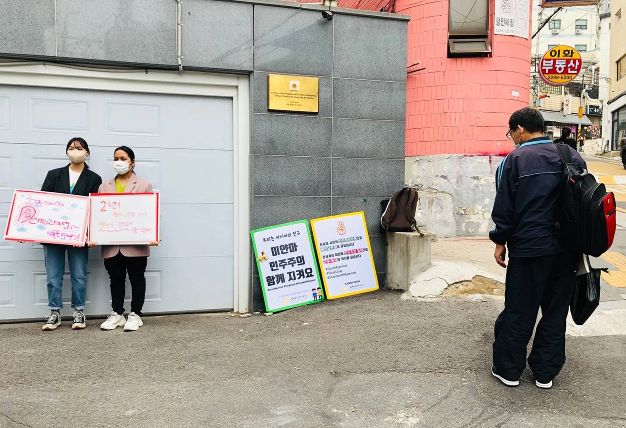 미얀마, 베트남, 한국 청년들의 만남이 4월부터 매주 이어지고 있습니다. 미얀마 민주주의와 평화를 외치며 행동하기 위해 세 나라의 청년들이 모였습니다. 김지연 그림책 작가와 함께 여러 나라의 전쟁 이야기를 만나며 평화를 고민하고, 미얀마 대사관 무관부 앞에서 릴레이 시위를 이어갑니다. “기억할 것이다, 미얀마가 민주화를 이룰 때까지!”