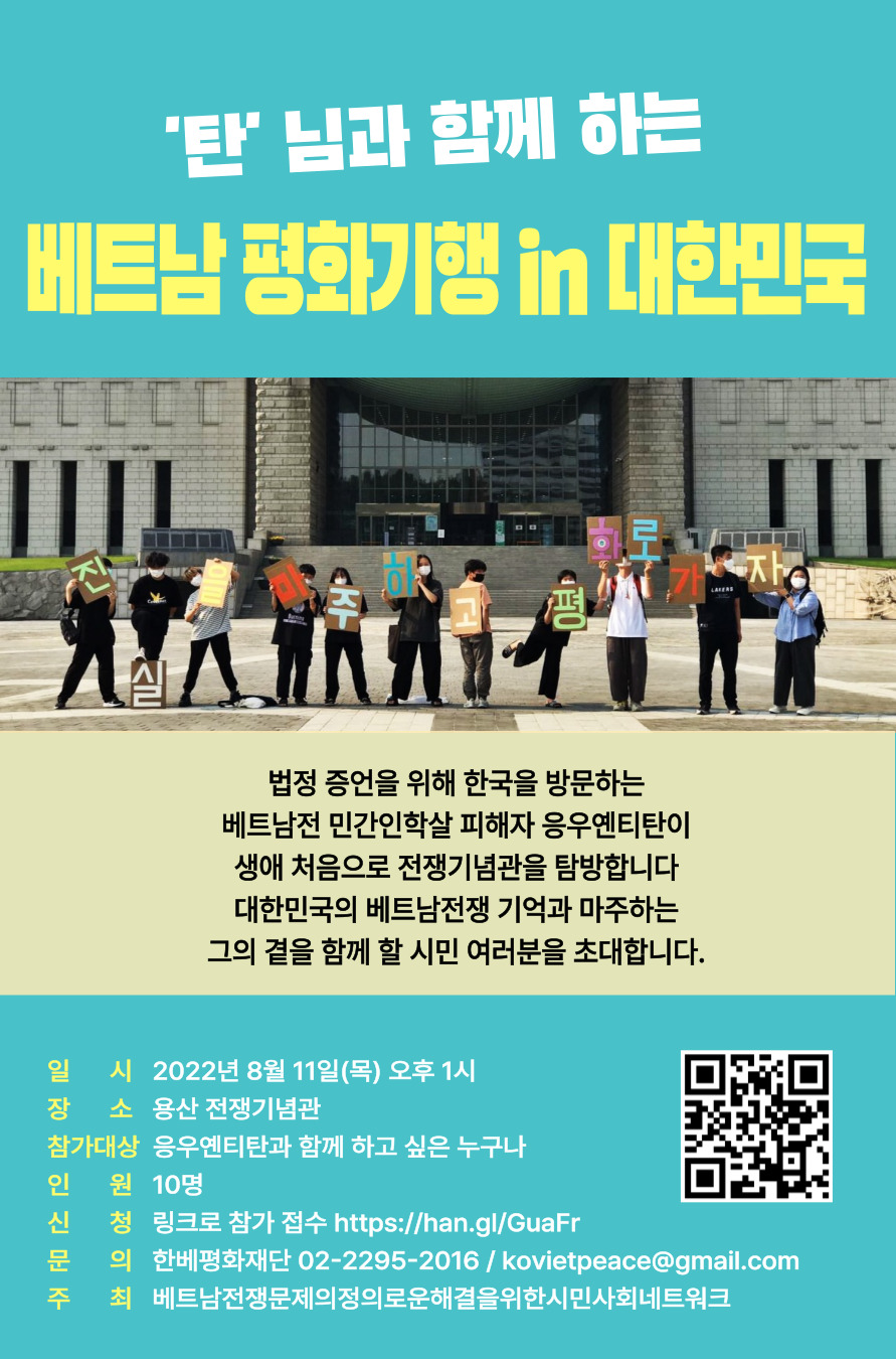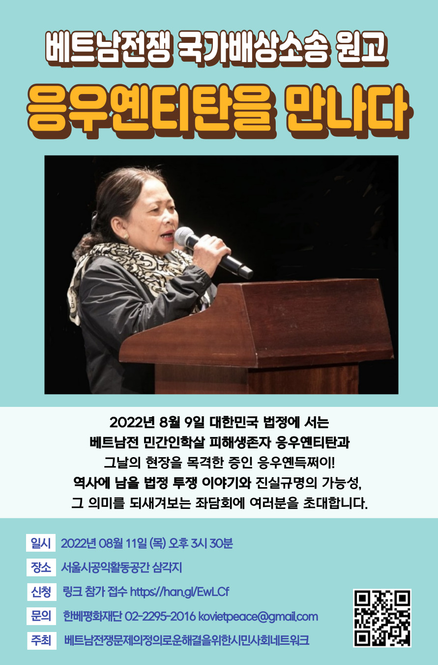 대한민국에 소장을 제출한 지 2년 3개월의 시간이 지났습니다. 코로나19 팬데믹으로 하늘길이 끊겼지만 응우옌티탄의 법정 투쟁은 계속 이어졌습니다. 다가오는 8월 9일(화), 응우옌티탄이 한국 법정에 서서 그날의 진실을 증언합니다. 3년 만의 한국 방문이자 네 번째 방한. 역사적인 순간을 눈앞에 두고 있는 그의 심경을 여러분에게 전합니다.