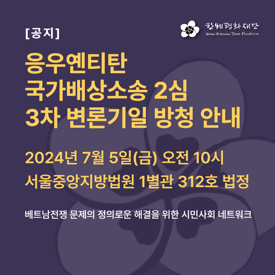 공지 및 보도자료[공지] 응우옌티탄 국가배상소송 2심 3차 변론기일 방청 안내(7월 5일 금요일)