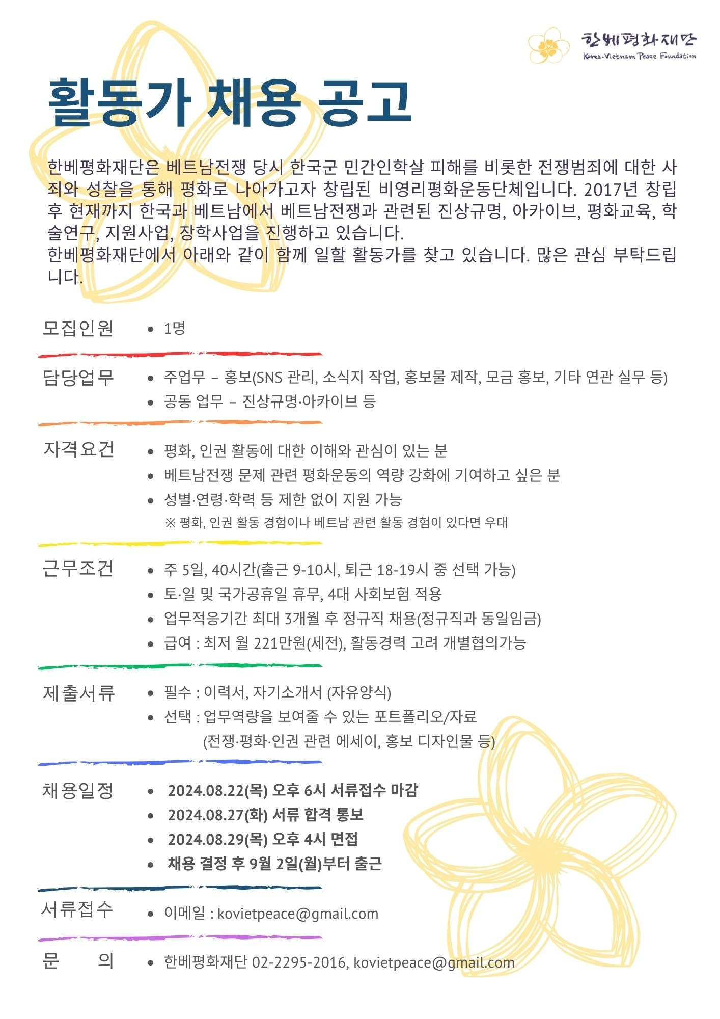 ※ 평화, 인권 활동 경험이나 베트남 관련 사업 경험이 있다면 우대합니다.