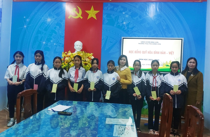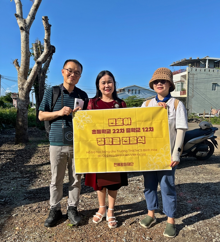 초등학교 학부모들 중에 형편이 어려운 가정은 학비 부담이 있을 수밖에 없습니다. 베트남 중부 꽝응아이성의 빈호아 마을도 사정은 크게 다르지 않습니다. 빈호아 초등학생 학부모들은 대부분이 농업에 종사하거나 인근 공업지구의 노동자들입니다. “과거보다 생계곤란 학생들은 분명 줄었지만 빈호아 마을 다수 가정들은 수입이 낮고 형편이 어려운 집도 많습니다. 매년 이어지고 있는 한베평화재단의 장학금이 빈호아 마을 학생들에게 큰 응원이 된답니다.”라며 빈호아 초등·중등학교 교장 하(Ha) 선생님이 말씀하기도 하셨습니다.
