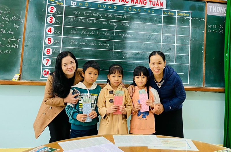알록달록 꽃무늬 봉투에 담긴 장학금을 빈호아 초등학생 분들에게 전했습니다.
