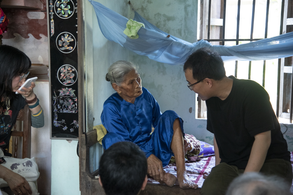 자택에서 평화기행단과 만나고 있는 하미학살 피해생존자 쯔엉티투 © 김창섭(이코노미 21)
